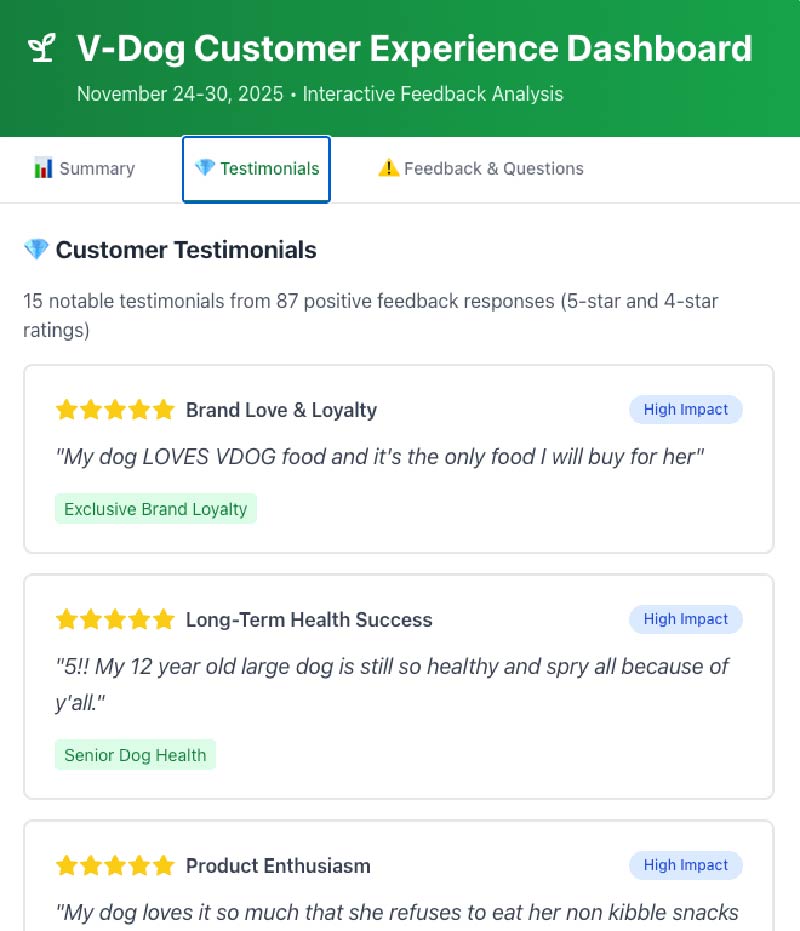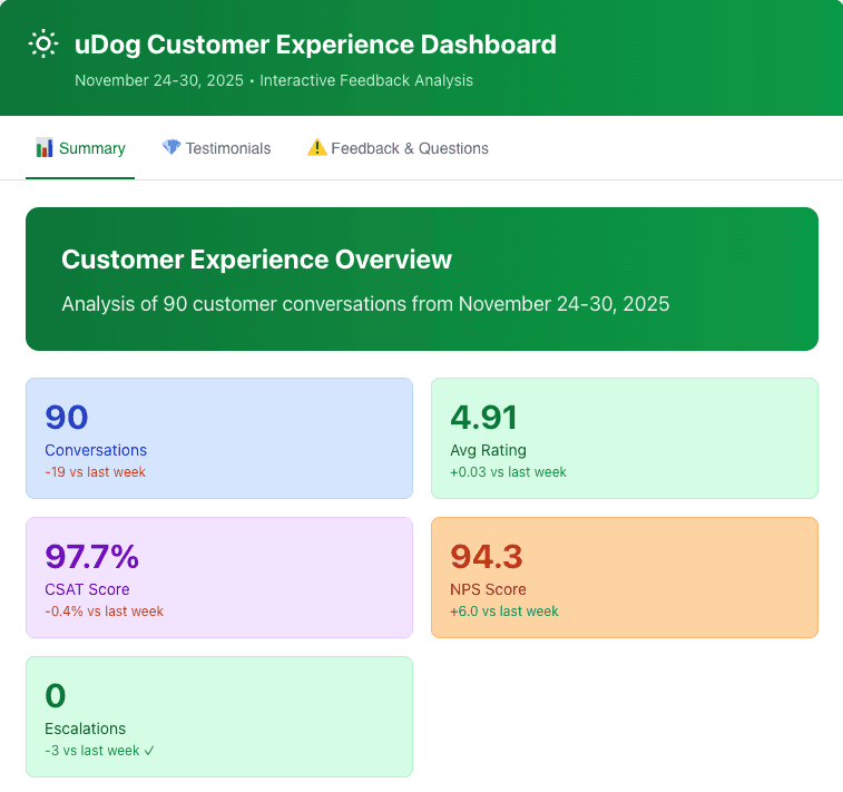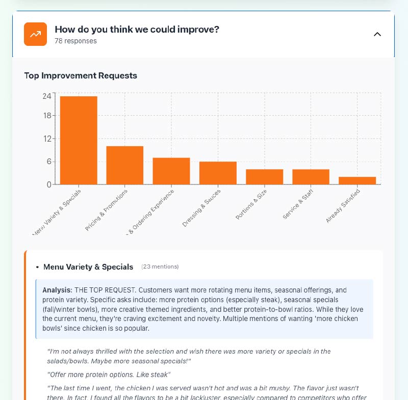 Meaningful summaries, trend detection, and direct quotes pulled from open responses.